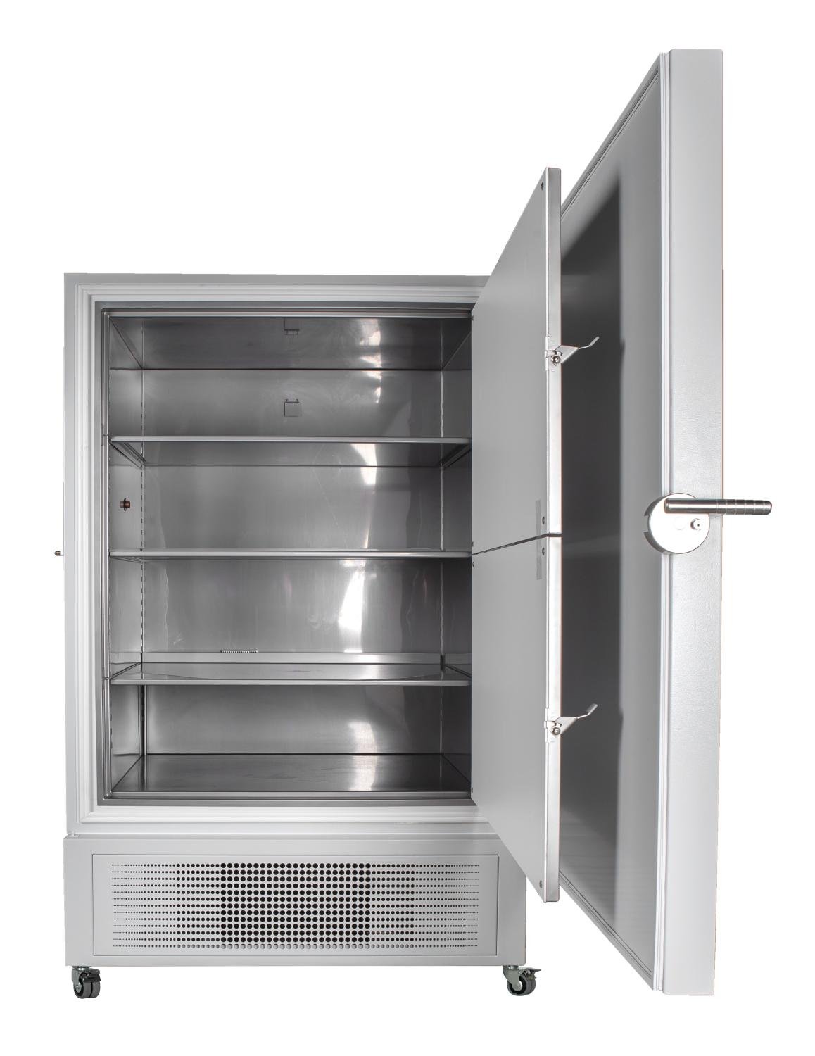 De Snijders VF1000-86G is de grootste -80°C vrieskast en is voorzien van 3 roestvrijstalen plateaus, 2 geïsoleerde binnendeuren en een groot en overzichtelijk touchscreen display. Bij een alarm kleurt het display rood, zodat er direct goed zichtbaar is dat er iets aan de hand is. De deur is voorzien van een robuuste handgreep.