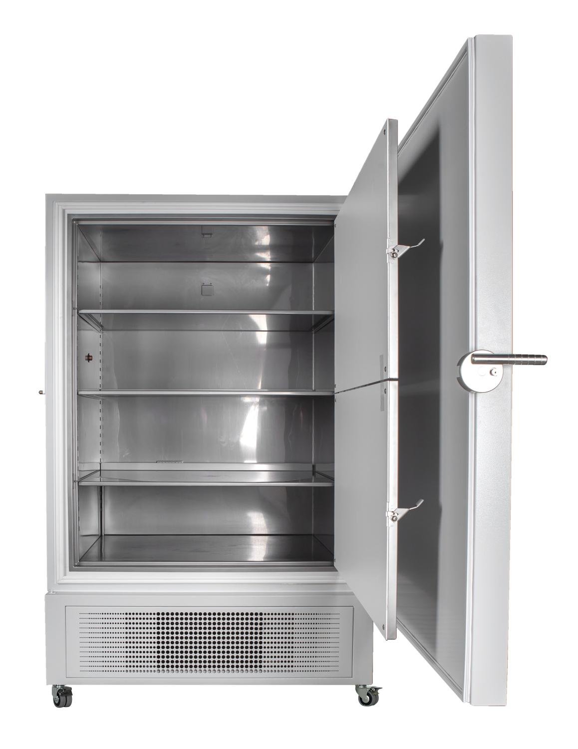 De Snijders VF830-86G -80°C vrieskast is voorzien van 3 roestvrijstalen plateaus, 2 geïsoleerde binnendeuren en een groot en overzichtelijk touchscreen display. Bij een alarm kleurt het display rood, zodat er direct goed zichtbaar is dat er iets aan de hand is. De deur is voorzien van een robuuste handgreep.